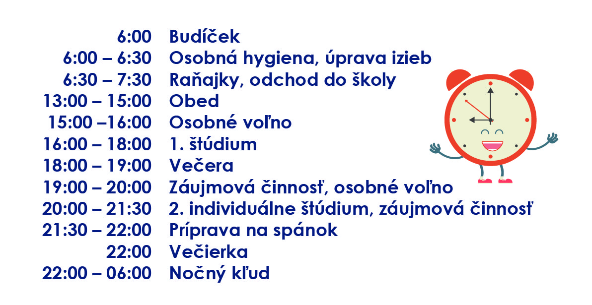 Prevádzka v školskom internáte v počas školského roka prebieha každý týždeň od